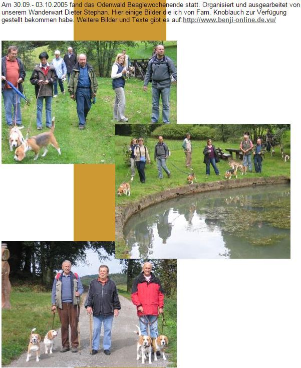 Nach der Frankreich-Exkursion hatte der Erkundungstrupp unter Wanderwart Dieter Stephan den nordöstlich der Landesgrenzen gelegenen Odenwald um Grasellenbach unter die Sohlen genommen. Die Beagle-Republik Deutschland hat sicher keine beaglefreien Zonen mehr; gerade die zum südhessischen Beagle-Bundesland gehörende Odenwaldregion weist eine höhere Beagledichte auf als es die Menschenzahl vermuten lässt. So lag es nahe, das verlängerte Wochenende um den „Tag der deutschen Einheit“ zu einem beagligen Treffen zwischen den Landesgruppen Baden-Württemberg und Hessen-Süd zu nutzen. Doch bis dahin bedurfte es noch einiger Vorbereitungen. Dieter Stephan hatte das Landhotel „Kühler Grund“ im Grasellenbacher Ortsteil Scharbach-Tromm unter der Leitung der Familie Arnold ausgesucht, die bereit war, uns mit 26 Personen und 23 Beagles in ihrem Hause aufzunehmen.