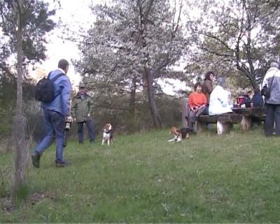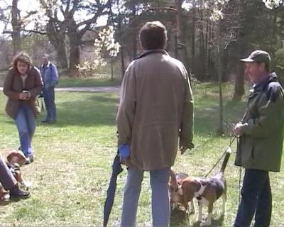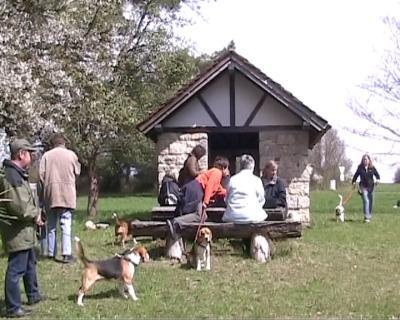 17 Beagles trafen sich am 30.April 2006 in Lehenweiler, um das Gebiet am Venusberg zu durchkämmen, wobei das nur begrenzt möglich war. Hinderlich waren die Hundeleinen, welche das auch dabeigewesene Hundepersonal den Beagles verpasst hatte, damit im Naturschutzgebiet keine Hasen und ähnliches von Beagles verscheucht werden. Gestartet wurde um 10:45 Uhr vom Parkplatz aus durch Lehenweiler, weiter nach Norden durch den Wald zu den drei Buchen. Nach kurzer Pause gings weiter in südlicher Richtung zum Kirchtalhof, um dann in einer Schleife den "Gipfel" des Venusberges zu erklimmen. Übertreiben sollte man an dieser Stelle nicht. Es ist nur eine etwas bewaldete Kuppe, die einen hervorragenden Blick nach Osten auf Sindelfingen ermöglicht. Um 13:30 Uhr stärkten sich alle Beagler im Gasthaus zur Krone. Die meisten Beagles waren mit dabei und unterhielten sich noch kurze Zeit unter den Tischen auf ihre Art, um dann in ihren sichtlich verdienten Schlaf zu versinken.