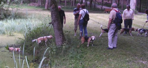 ging es dann weiter zum nächsten Etappenziel dem „Langen Weiher“ und dann zum weit im Wald versteckten Waldsee. Hier hatten die Beagles wieder die Möglichkeit sich ein wenig abzukühlen. Auf dem Weg