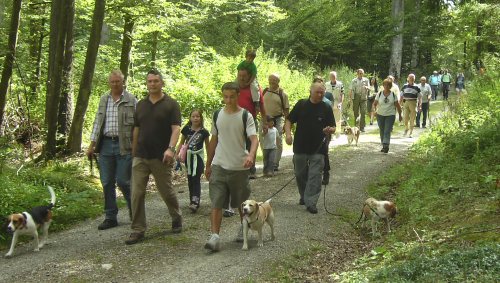 2007 trafen sich zum ersten Mal 33 Herrchen und Frauchen mit ihren insgesamt 18 Beagles zum Wandern im Burrenwald bei Biberach/Riss.