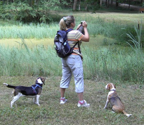 Die erste Pause machten wir an einem kleinen Weiher, an dem sich so mancher Beagle ins kühle Nass stürzte. Hier entstand auch unser Gruppenfoto. Mit frisch gekühlten Läufen und kalter, feuchter Nase