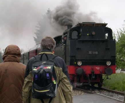 Als die qualmende Dampflok in den Bahnhof einfuhr, wurden wir vom Schaffner gleich auf den letzten Wagen verwiesen, der komplett für uns reserviert war. Dies erleichterte die Einstiegsprozedur