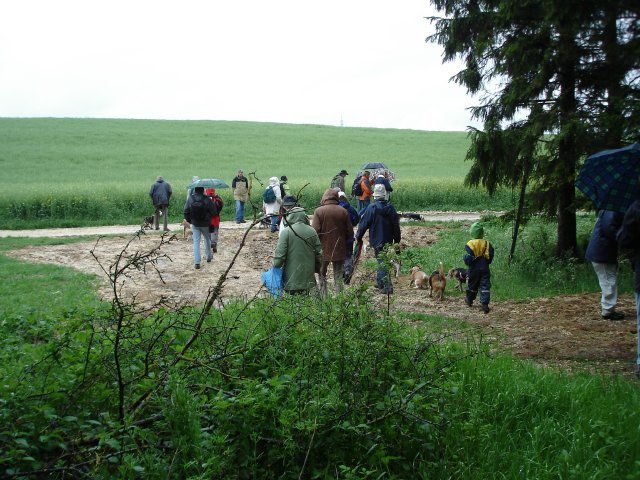 Getreu dem Motto, es gibt kein schlechtes Wetter, sondern nur schlechte Kleidung erschienen 27 Hundeführer und 18 Hunde pünktlich um 10.00 Uhr am Treffpunkt. Dies war eine hohe, von uns nicht