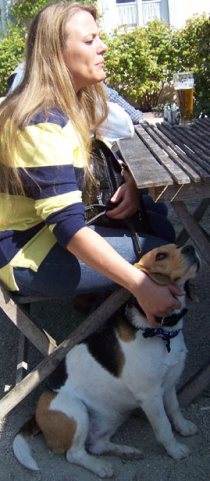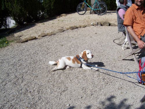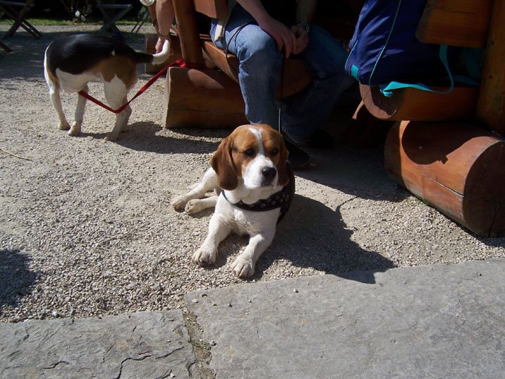 gemütlich eben, danach leicht abfallend durch den Wald, anschließend folgte ein kleines Flusstal. In dem Bach konnten sich die Beagles vor dem nächsten sehr steilen Anstieg erfrischen. Auf der Anhöhe