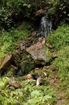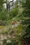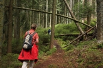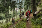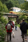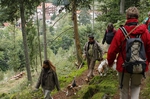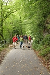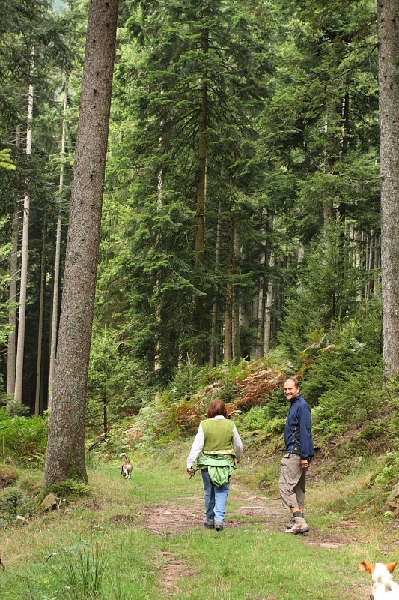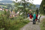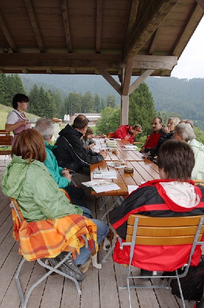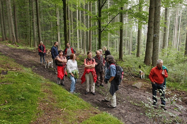 aber die Gelegenheit aus dem Flößerbrunnen zu trinken, ließ sich keiner entgehen. Das war auch nötig, denn dann kam die erste Steigung, der noch einige folgen sollten. Mit angenehmem Waldboden unter