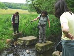 23.05.08 - Für diesen Tag war die erste Tageswanderung geplant - die Bachtour - 16 km. Leider begann dieser Tag mit einem riesengroßen Schrecken , unser lieber Dr. Peter Hey hatte am Morgen einen Herzinfarkt erlitten und war mit dem Notarztwagen in das Klinikum Marburg gebracht worden. Eine traurige Fr. v. Lünink zurücklassend, die auf neue Nachrichten aus dem Krankenhaus wartete, setzten wir uns um 10.00 Uhr im Konvoi nach Lauterbach in Bewegung. Auf Wegen und kleinen Pfaden ging es durch Mischwald bis zur ehemaligen Bahntrasse, auf der heute der Vulkanradweg verläuft. Querfeldein ging es durch die sanfte Wiesenlandschaft und weiter über den Höhenrücken des Silberbergs mit Aussicht in alle Richtungen. Der folgende Waldrandpfad umrundete die Münchwiesen, ein Naturschutzgebiet mit seltenen Tier- und Pflanzenarten. Hier querte der Weg den Bach Lauter auf historischen Schrittsteinen, anspruchsvoll für die Beaglemeute. Weiter ging es durch den Wald zum Rothackerkopf. Hier wurden wir zu unserer Überraschung mit Getränken und frischem Obst verwöhnt, alles schön aufgebaut auf dem Tisch der kleinen Schutzhütte und liebevoll dekoriert mit kleinen Waldmeistersträußchen. Dies war von einem Sohn unserer Gastgeber und einer Freundin arrangiert worden. Wir gingen weiter durch weite Flurlandschaften zum Schloß Eisenbach.Im Restaurant ruhten wir uns bei Kaffee und Kuchen aus. Gestärkt verließen wir die Schlossanlage. Ein romantischer Saumpfad beendete die Wanderung und um 19.00 Uhr fanden wir uns wieder zum Abendessen ein. Weindiskussionen gab es dieses Mal nicht aber Behlert`s überraschten in einer heißen Diskussion über Schneckenkorn, dass bei ihnen der Mozarella im Blumentopf wächst, gemeint war eigentlich Basilikum. Zum Ausklang dieses lustigen Abends stießen wir noch einmal auf Peter Hey`s baldige Genesung an und freuten uns auf den nächsten Tag.