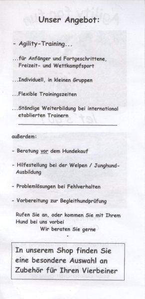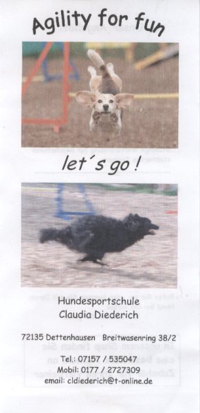 Wir beabsichtigen im März 2008 für unsere Hundeausbildung einen Kompaktkurs anzubieten. Der Kurs richtet sich an Anfänger, wie auch Fortgeschrittene. Der Lerninhalt beträgt Unterordnung mit Zielrichtung Beaglediplom. Der Kurs beginnt am Samstag 01. März 2008 und wird 10 mal stattfinden. Kostenpunkt pro Teilnehmer 130 Euro. Mindestteilnehmerzahl damit der Kurs zustandekommt sind 4 Teilnehmer. Der Kurs wird von der Hundesportschule Claudia Diederich Dettenhausen durchgeführt. Weitere Infos bei unserer Ausbildungsleiterin Marion Reeber, Tel. 07472 21125 , E-mail: m.reeber@gmx.de