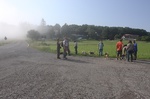 keine Rücksicht nehmen. Bald stellte sich aber heraus, dass auch verspätete Teams ihre Chance bekamen, den Anschluß an die Meute zu kriegen. Denn schon nach wenigen Minuten machten sich 3 Hunde auf