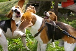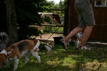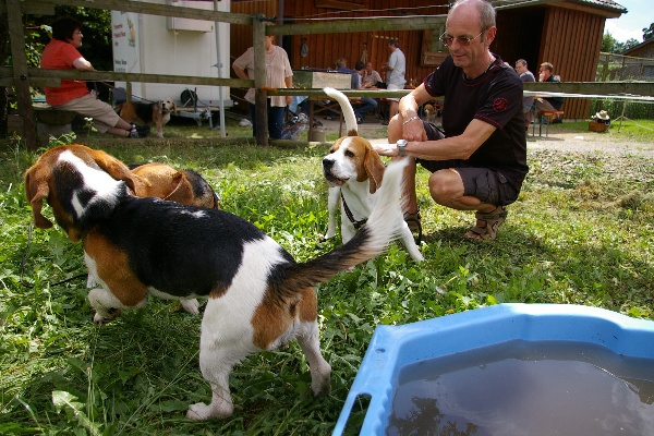 schmackhaftes Bauernbrot und schwäbischer Kartoffelsalat gereicht. Gekühlte Getränke rundeten diese Grillparty bestens ab. Und nicht genug. Jeder Beagle bekam von Renate Zeiss eine Handvoll Leckis,
