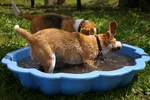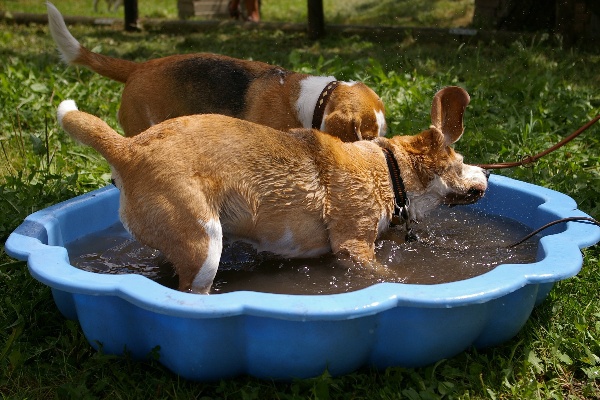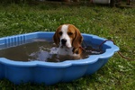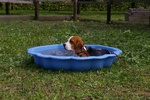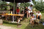 sozusagen der Nachtisch für unsere Hunde, die es sich im Schatten der Himbeersträucher und Obstbäume schon längst gemütlich gemacht hatten. Sogar ein Hunde-Swimmingpool stand zur Verfügung der auch