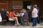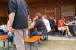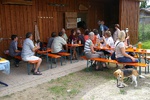 braucht. Liebevoll dekorierte Festbänke , aufgestellt unterm Vordach des Pferdestalles warteten darauf , die von der Wanderung zurückkehrenden Beagler aufzunehmen.