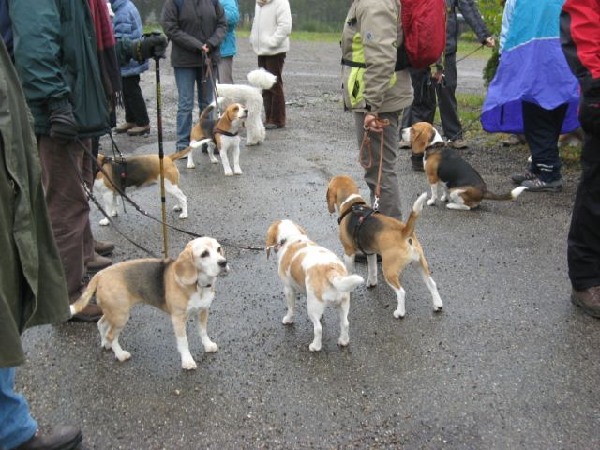 Maximal trafen 29 Beagler mit ihren Beagles und drei EB´s (Extra Beagles) im Hause Kieffer ein. Am Donnerstag, dem Starttag, ging es noch trockenen Fußes von Gaschney zum Möhrenloch und zum Lac de Schiesrodried. Der Freitag Vormittag stand noch zur individuellen freien Verfügung. Ab Freitag Nachmittag wurden die Wege jedoch schwerer begehbar. Kommentar einer Beaglerin (O-Ton): „Bis gestern galten diese Wanderschuhe als wasserdicht. Heute habe ich nasse Füße.“ Das lag nicht an den beiden Seen, die jetzt im Programm gestanden hatten (Lac de la Lande; Lac Blanchemer). Der lange Aufstieg zur Ferme Auberge Schmargult wurde durch freundliche Fahrdienste verkürzt.