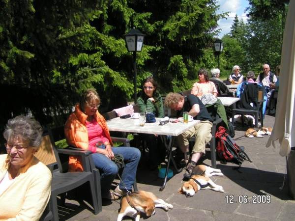 Ab Mittwoch, dem 10.6.2009, trudelten die ersten Beagle mit ihren Herrschaften aus Deutschlands Norden in Oy und dem edlen Hotel „Am Sonnenhang“ ein, das uns mit seinem Wellness-Angebot lockte. Das Wanderprogramm hatte natürlich Vorrang vor den Verwöhn-Angeboten (Sauna, Schwimmbad, Peeling, Fitness etc.), so dass wir diesen Teil der Gastlichkeit kaum in Anspruch nehmen konnten.
