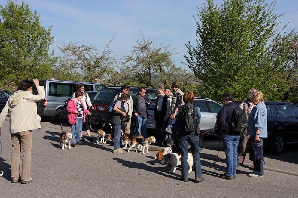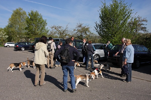 sich auf dem „Parkplatz“ der TSG Ulm 13 Beagler darunter auch unsere ehemalige Ausbilderin Frau Linhard die inzwischen nach Pfronten verzogen ist, sowie die Schatzmeisterin der Bayern- Beagler Frau
