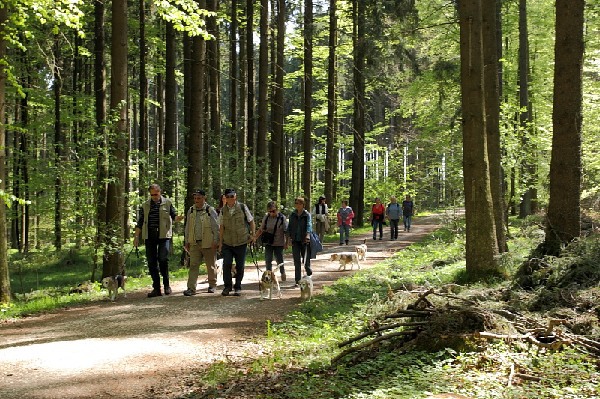 Auf dem Hochsträß angekommen, wanderten wir dann auf schönen Wegen durch eine frisch erwachte Natur. Bei ansteigenden Temperaturen war man froh, dass der Weg auch durch etliche Buchenwälder führte.