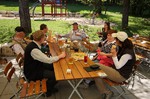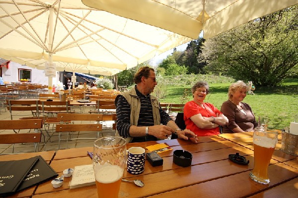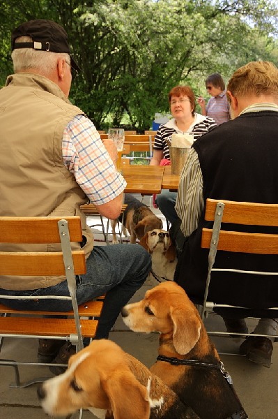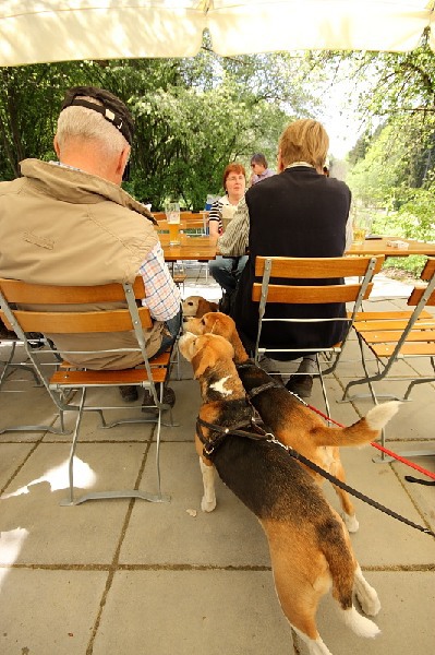 Kurzentschlossen fuhren wir mit unseren Autos in ca. 10 Minuten zurück zu dem Ausflugslokal, in dem wir noch ein gutes Mittagessen bekamen, unsere Beagles lagen erschöpft und müde unter den