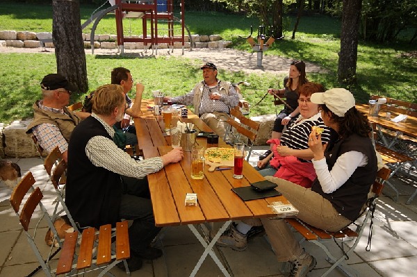 Nach einem sehr steilen Anstieg erreichten wir dann hungrig und durstig unser 1. Ziel, eine Gartenwirtschaft um dort eine verdiente Pause einzulegen. Von hier aus traten wir den Rest der Wanderung