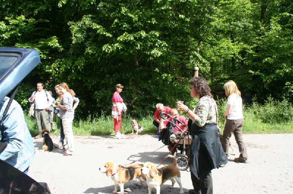 Beagle trafen sich am 16. Mai 2009 um 10.30 Uhr auf dem Parkplatz beim Schützenhaus in Waldenbuch. Herr und Frau Kühnert aus Stammheim waren das 1. Mal bei einer Beaglewanderung mit Bonita