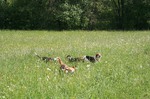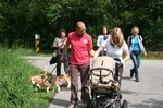 Segelbachbecken, vorbei an der Totenbachmühle. Ein paar der Hunde durften auf halbmeterhohen Wiesen herumtoben und sich mit leckerem kühlen Wasser aus dem Bach erfrischen. Außerdem hatten wir ein