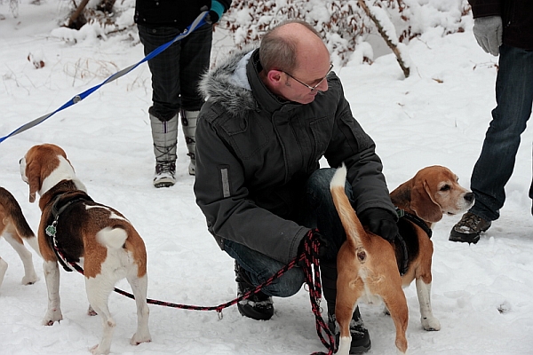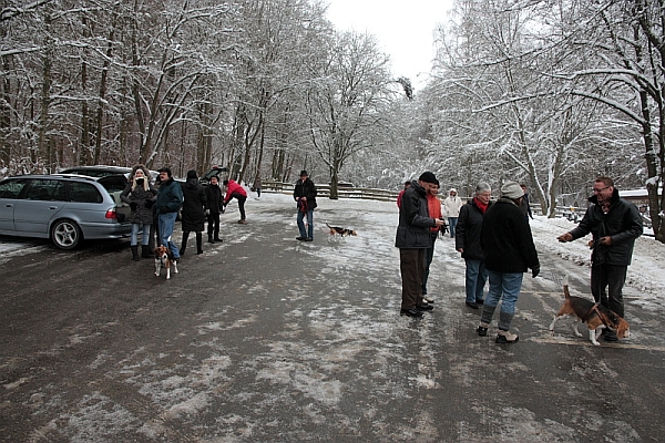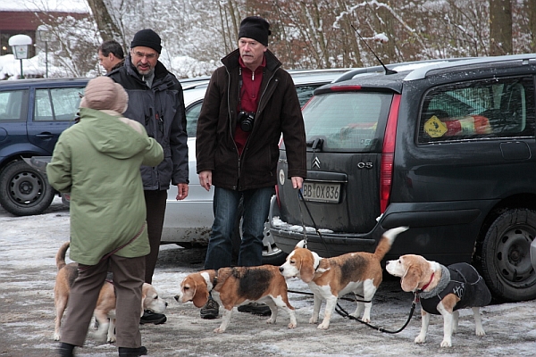 Parkplatz. Wir sind gerade noch auf den letzten Drücker eingefahren. Vertrautes Beagle-Geläut in unseren Ohren, während wir aus dem Auto steigen. Stress pur....Hunde aus dem Auto....anleinen ....die