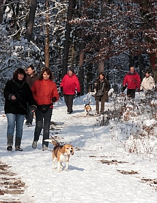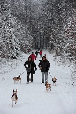 von verschneiten Wäldern. Sie Sonne hat den Nebel besiegt, und krönt das Ganze mit einem stahlblauen Himmel. Alle Zutaten für einen perfekten Beaglespaziergang sind nun vereint. Die Sonne erwärmt den