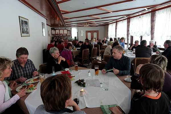 Das Essen ist bereits vorbei, als Renate Zeiss uns eine Vorschau über unsere Veranstaltungen in 2011 gibt. Als jüngstes LG-Mitglied in Verbindung mit dererfolgreichen Teilnahme am Beagle-Diplom mit