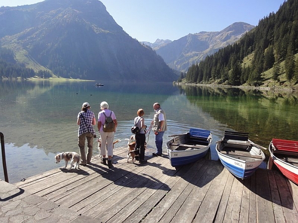 Übung macht den Meister - so fanden alle Teilnehmer am Samstagmorgen gleich den Parkplatz im österreichischen Tannheim, von dem aus man mit dem Bähnle oder den Beinen den Vilsalpsee erreichen konnte. Da keiner der Marschierer gipfelstürmerische Ambitionen ausleben wollte, kamen alle vergnügt zum Ausgangspunkt zurück.