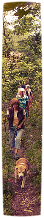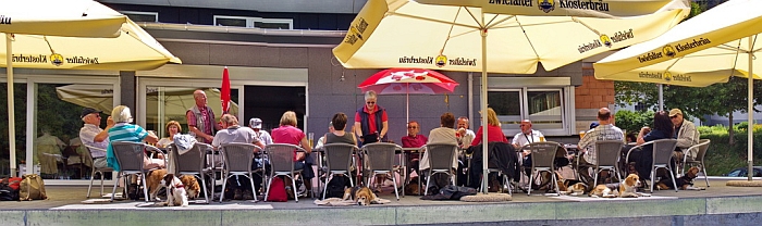 Nachdem einige Autos zum Etappenziel Hettingen gebracht wurden um den weniger ambitionierten Wanderern den etwas bergigen Rückweg zu ersparen, gingen wir los. Unterwegs hatten unsere Hunde Gelegenheit zu einem Bad im Bach, die von einigen ausgiebig genutzt wurde. Es war herrliches Wanderwetter - trocken und nicht zu heiß, so daß wir gut vorankamen und vorbei an einer Forellenzucht rechtzeitig zum Mittagessen das Sportheim Hettingen erreichten.