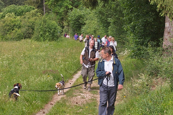 Vierundzwanzig Beagler und sechzehn Hunde trafen sich am 3. Juli 2011 gegen 9 Uhr 30 auf dem Parkplatz am Friedhof in Neufra zu unserer zweiten Fehlatal - Wanderung. Bereits im Juni 2007 hatte das schöne Tal mit dem Flüsschen Fehla vielen gefallen.