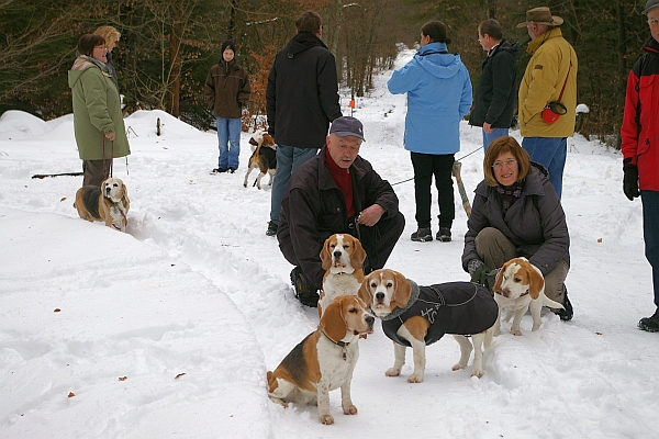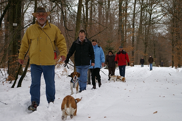 Am 06.01.2011 trafen sich der harte Kern der Landesgruppe Baden-Württemberg zum Heilige Drei Könige Spaziergang auf dem KSG Vereinsgaststättenparkplatz in Stgt.Gerlingen (Schillerhöhe) um 10:30 Uhr. Schon am Morgen hörte man im Radio, dass in Baden-Württemberg stark vereiste Straßen zu vielen Unfällen führten, und so mussten auch verständlicherweise einige Landesgruppenmitglieder, die eine weitere Fahrstrecke vor sich hatten, spontan absagen. Beim Austeigen aus dem Auto vor Ort bekamen wir auch gleich den ersten Eindruck über die Beschaffenheit des Bodens. Es war wirklich äußerste Vorsicht geboten, wenn man nicht gleich zu Beginn auf dem Allerwertesten landen wollte. Unseren Beagles war das eigentlich völlig egal, die hatten ja auch "Allrad".