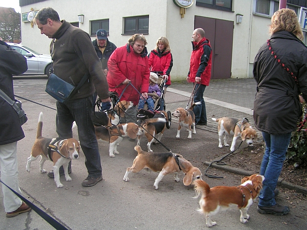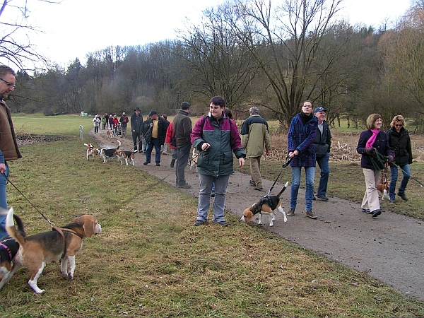 Am 5. Februar 2011 trafen sich 28 Beagler – darunter 4 Kinder – mit ihren 19 Vierbeinern in Geisingen, ein Ortsteil von Freiberg am Neckar, zu einem Spaziergang durchs Wiesental. Das Wetter war freundlich und so ging es pünktlich um 10.30 Uhr los.