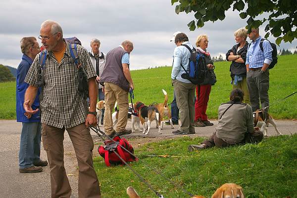 Tagesgäste aus der Umgebung mit eigenem Beagle konnten am Treffpunkt in Breitnau begrüßt werden, die sich zu unserer doch recht großen Wanderschaft dazugesellten. Die Beagles vertrugen sich recht