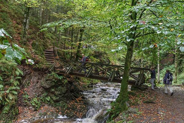 Rotbach entlang , vorbei an historischen Sägewerksmühlen, bis zum Hofgut Sternen zu gelangen, wo wir auch unsere Pause machten. Das Wetter hatte sich überraschend gebessert, so daß einige von uns