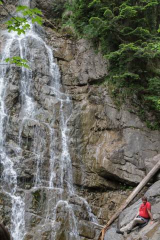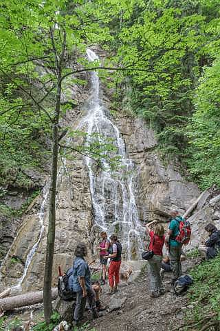 Nach einer verdienten Stärkung stiegen wir durch die Höllschlucht wieder zum Wanderparkplatz ab. Unterwegs konnten wir an einem Wasserfall eine Pause einlegen und dem Mut einiger Beagles auf einer