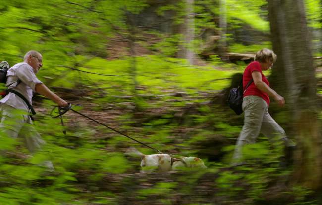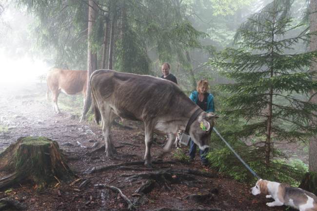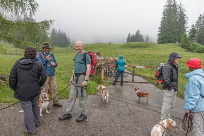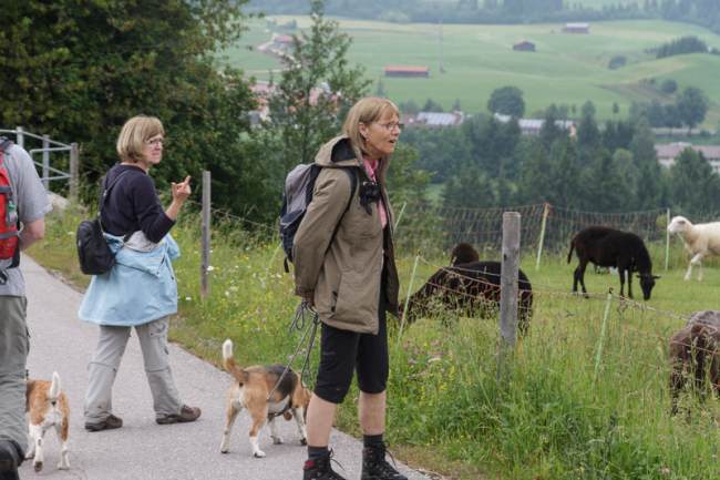problemlos zu bewältigen war, erwies sich jetzt als schlammige Wüste. Vor allem, wenn der Wanderweg durch Viehweiden führt. Auch musste ein Beagle Namens Snoopy mehrfach unter Einsatz des Lebens der