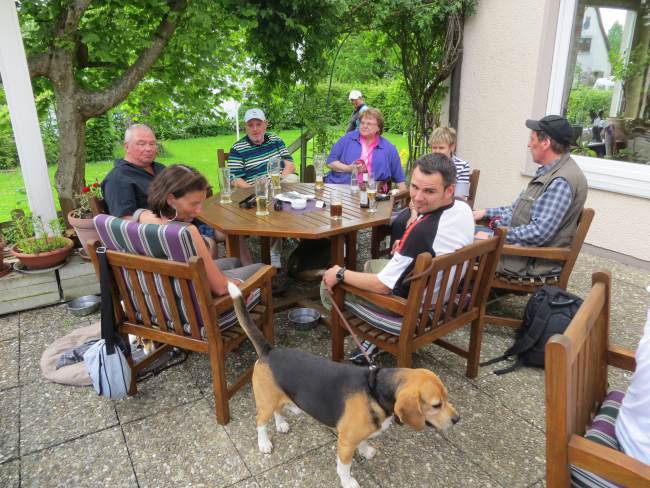 Im Biergarten des Landhaus Post nahmen wir die hervorragenden Speisen ein. Auch unsere Hunde wurden von der hundeliebenden Wirtin mit Leckerlies ausreichend versorgt.