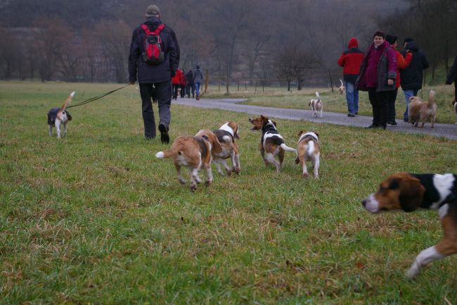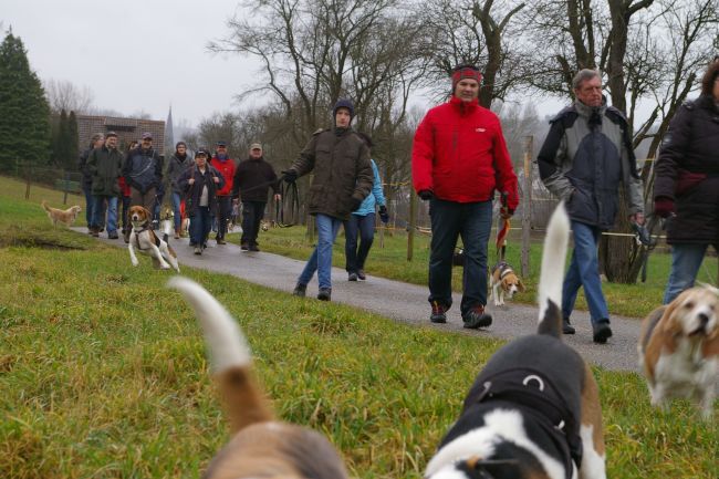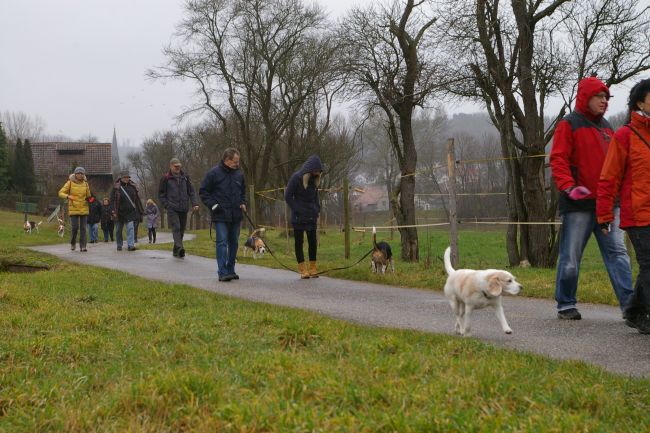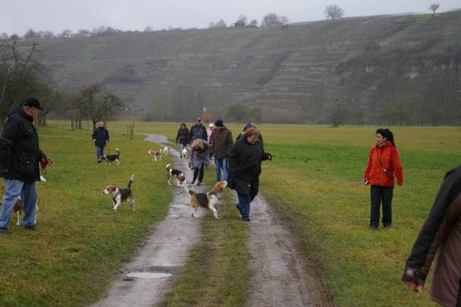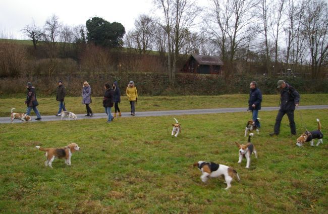 Pünktlich um 10.30 fanden sich 29 Beaglefreunde mit 23 Hunden zur ersten Wanderung im Jahr 2013 auf dem Parkplatz des Vereinsheims "Zur Heidi" in