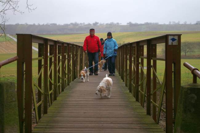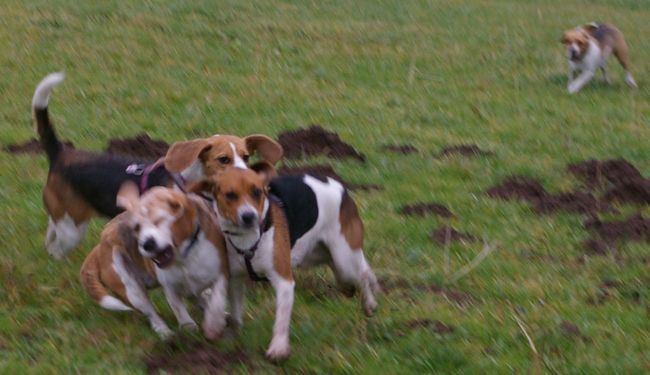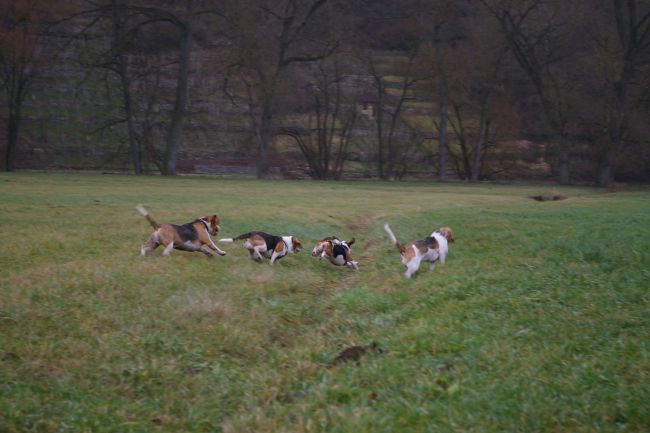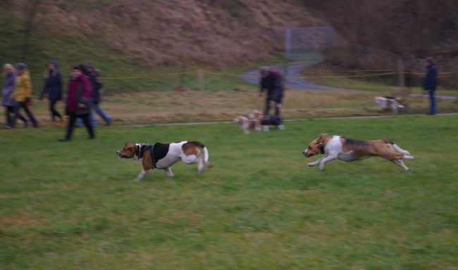 Unsere Hunde tobten ausgiebig am Enzufer. Wie bei den Beagles üblich, wollten einige Hunde einen anderen Weg als Herrchen und Frauchen einschlagen. So liefen 2 Beagle Richtung Rosswag statt nach