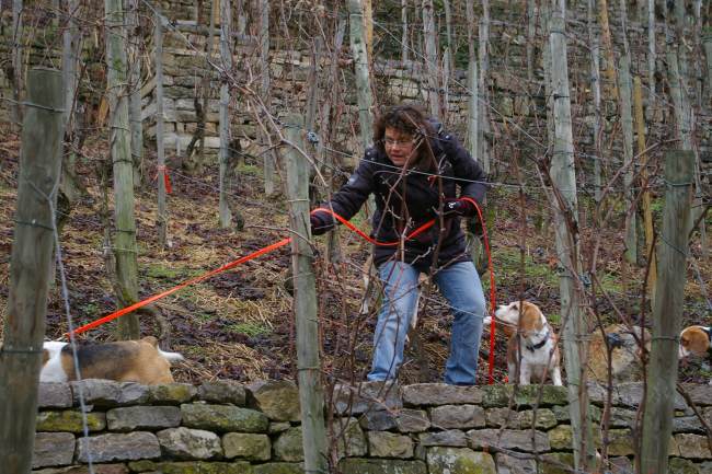 Mühlhausen; einige Beagle erkundeten die Weinberge.