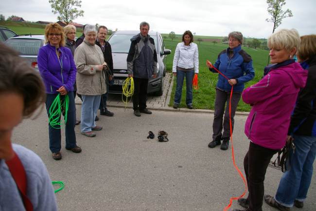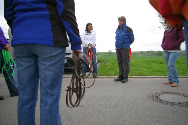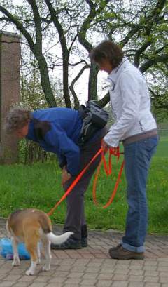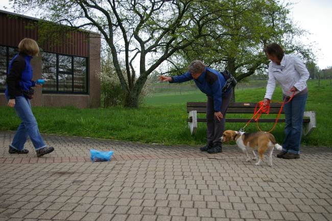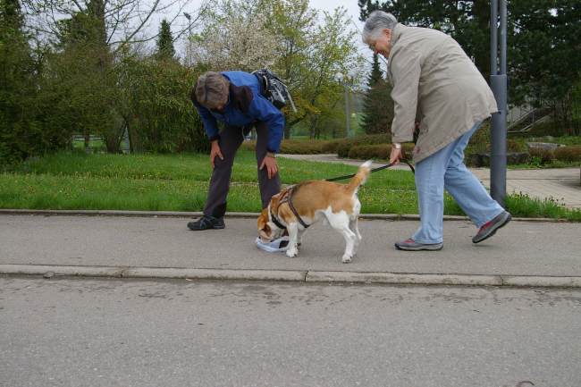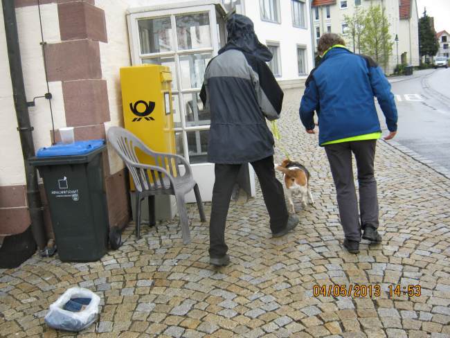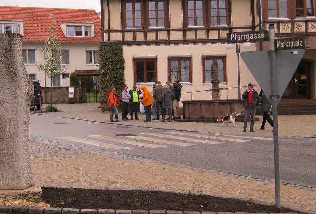 8 Teams der LG Baden-Württemberg, und 8 weitere passive Zuschauer ließen sich von Christiane Ostermeier aus München in Sachen Mantrailing (Personensuche) weiterbilden. Christiane Ostermeier betreibt in München eine Hundeschule und beherrscht ein breites Repertoire an Hundeausbildungsthemen, und unter anderem trainiert sie auch die LG Bayern. Die Veranstaltung begann um 09:00 Uhr in Deckenpfronn im Hotel-Restaurant zur Krone. Bei Frühstückskaffee wurde durch Christiane Ostermeier Theorie betrieben bzw. anstehende Fragen beanwortet. Anschließend gings raus ins Freie, um die ersten Gehversuche zu absolvieren. Nach dem Gassigehen und der Mittagspause in der Krone ging es weiter, um auf die praktisch erlernten Schritte aufzusetzten. Bei allen Teams konnte man deutlich erkennen, daß die Beagles begriffen hatten, was von ihnen verlangt wird. Der Grundstein wurde am heutigen Tag gelegt. Jetzt liegt es an uns, das bisher erlernte zu festigen und weiterzuentwickeln. Leider wurde dieser Ausbildungstag von Petrus nicht besonders unterstütz, und so waren alle ziemlich froh, als wir unser Tagespensum erreicht hatten, und alle ins wohlverdiente Trockene kamen.
