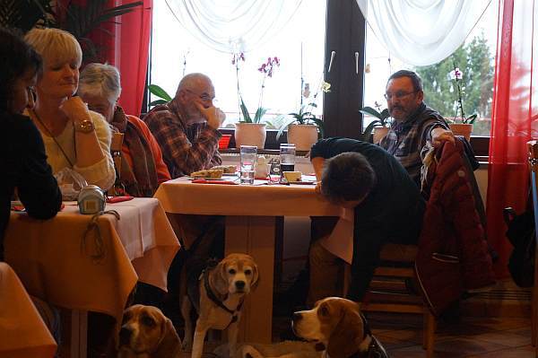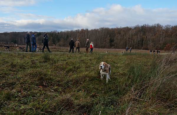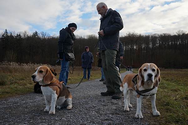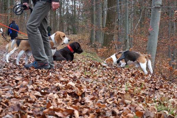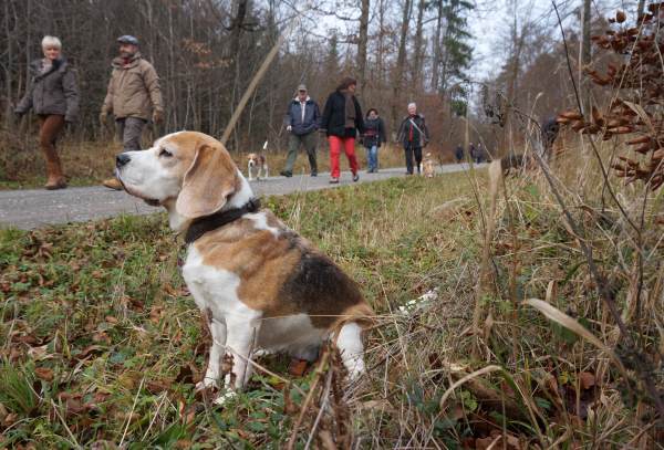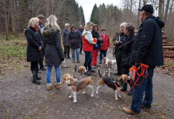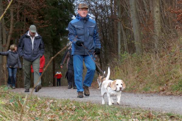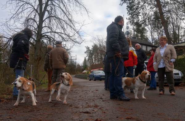 Uwe Zumpe gab den Startschuß für die Weinachtsfeierwanderung am 08.12.2013. Um ca 13:00 Uhr bewegte sich der Beagler-Tross (ca 36 Leute mit Hunden) vom Restaurant Ochsentrog Böblingen in Richtung Westen. Unter der B464 hindurch, dann in Richtung Süden. Als wir schon fast Holzgerlingen zu sehen bekamen schwenkten wir wieder zurück in Richtung Böblingen, überquerten wieder die B464 und tangierten den Waldfriedhof, so daß wir nach gut 2 Stunden wieder im Ochsentrog waren. Kaffee und Kuchen war jetzt das Thema, umrahmt mit Bildervorträgen über die vergangenen Aktivitäten der Landesgruppe, von Thomas Stocker und Hans Krause. Ein kurzer Vorausblick, über die kommenden Aktivitäten in 2014 wurde gegeben. Die Beagles sind mit einem Weihnachtsgeschenk bedacht worden, sowie die Akteure, welche Anteil hatten am guten Gelingen der LG-Veranstaltungen in der vergangenen Saison. Zwischenzeitlich hatte auch jeder sein Abendessen eingenommen, und so konnte die Weihnachtsfeier gegen 19:00 Uhr ausklingen.