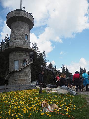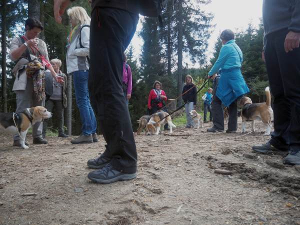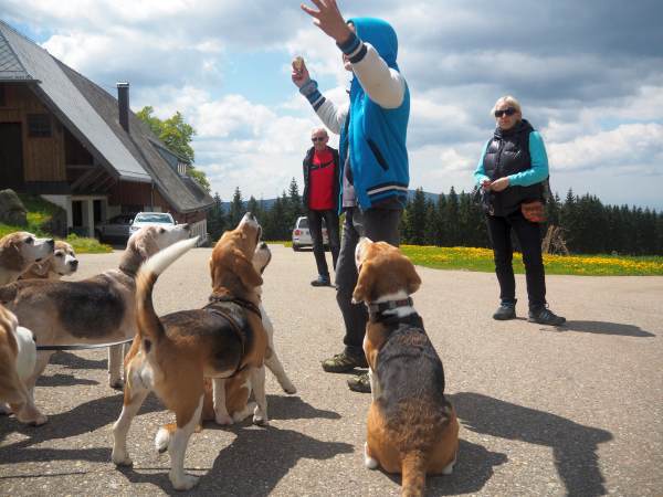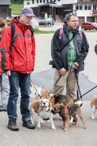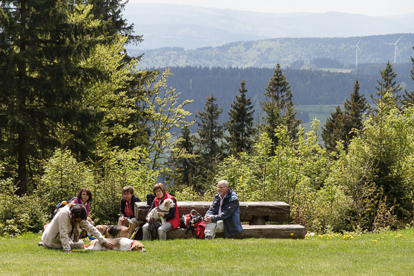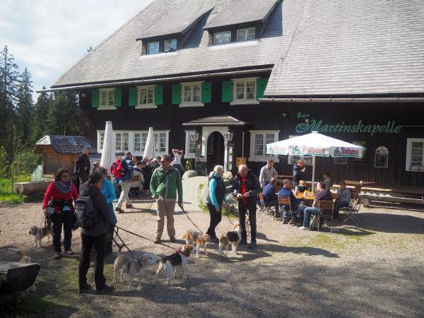 Europäische Wasserscheide Donau/ Rhein überwandern. Nun besichtigten wir die Bregquelle (Hauptfluss der Donau) und stärkten uns anschließend im nahegelegenen Berggasthof Martinskapelle. Beaglehündin