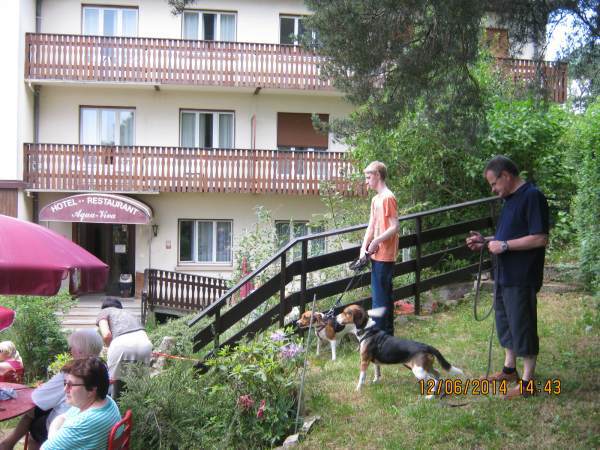 Am frühen Nachmittag des Donnerstag trafen die fröhlichen Beagles mit ihren Herrchen und Frauchen am Hotel ein. Ein über unseren Köpfen dräuendes Gewitter hieß uns in der Nähe bleiben und nur einen ausgedehnteren Rundgang zu wagen. Die Abendstunden in Kieffers Restaurant mit französischen Leckereien eilten bei fachbeaglischen Diskussionen rasch dahin.
