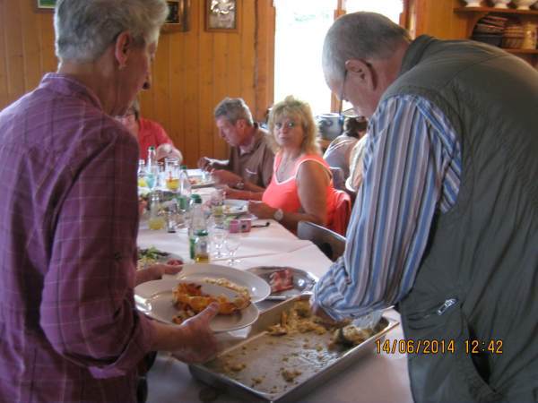 Am Samstagmorgen machten wir uns auf den Weg zum südlich von Munster gelegenen Ski-Gebiet "Schnepfenried" und der dortigen Ferme Auberge, die für ihren überbackenen Munsterkäse (Munster coiffé) überregional bekannt ist. Nach einer Aufwärmrunde mundeten die dreizehn Portionen, die sich wegen ihrer Kalorien-Fülle auf 24 Münder verteilten. Zum Nachmittag umrundeten wir beim heimischen Panoramahotel den Frauenackerkopf.