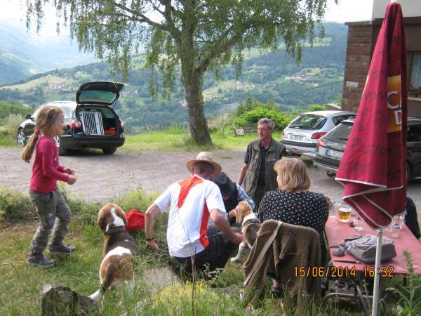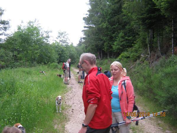 Seit zwanzig Jahren besuchen wir Veranstaltungen der südwestdeutschen Beagler in verschiedenen benachbarten linksrheinischen Elsass-Gebieten, seit zehn Jahren im Hotel "Aqua Viva" der Familie Jacky und Isabell Kieffer in Hohrodberg / Munster. In diesen Jahren hat Herr Prof. Dr. Willi Neuerburg die Wanderungen minutiös vorbereitet und durchgeführt. 2013 hat er aus Alters- und Gesundheitsgründen die Organisationsarbeit in "jüngere Hände" gelegt. Ich bedanke mich ganz herzlich bei Beaglefreund Günther Metzger, der mit mir in der Zeit vom 22. bis 27.5.2014 ohne Murren und Klagen die Strapazen des "Vorwanderns" auf sich genommen hat. In dieser Zeit haben uns Prof. Neuerburg und seine Ehefrau Luitgart vor Ort den Rücken gestärkt und uns mit zahlreichen Ratschlägen zur Seite gestanden. Mit Karte, Kompass und Kartenmesser haben wir uns die Strecken "ausgeguckt" und dann auf Schusters Rappen erwandert. Wir waren uns darüber im Klaren, dass wir nicht für alle Wander-Leistungsklassen passende Routen ausformulieren konnten. Gelegentlich mussten wir aus Witterungs- und Teilnehmergründen vor Ort artgerechte Alternativ-Wanderstrecken nachweisen.