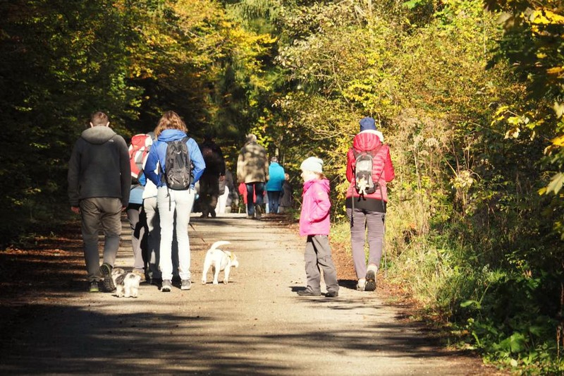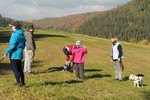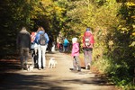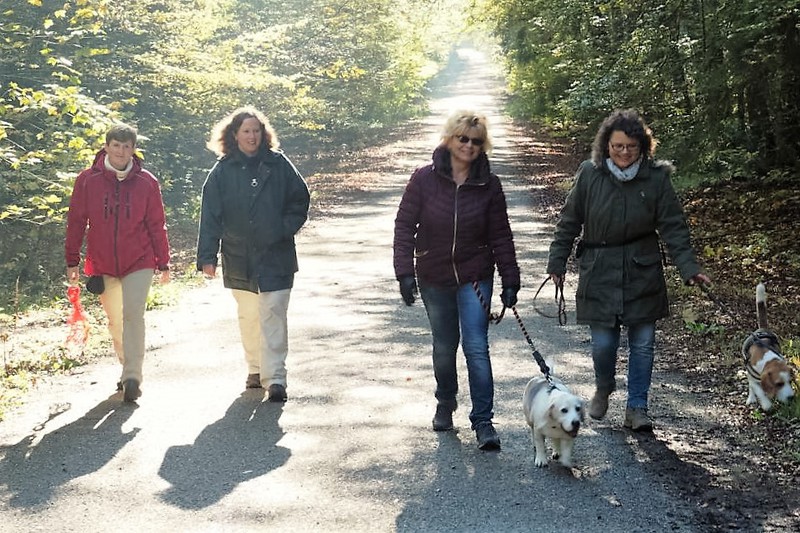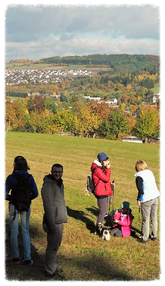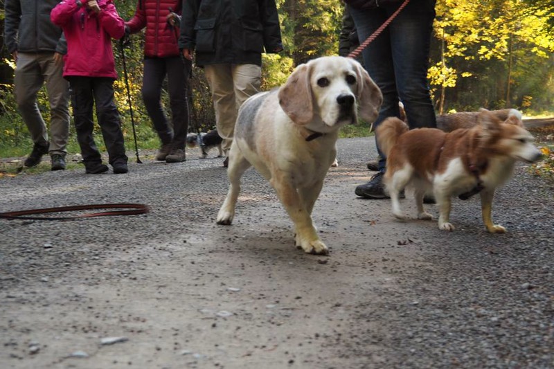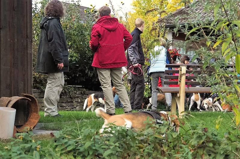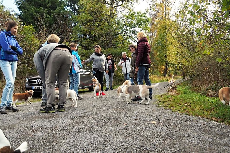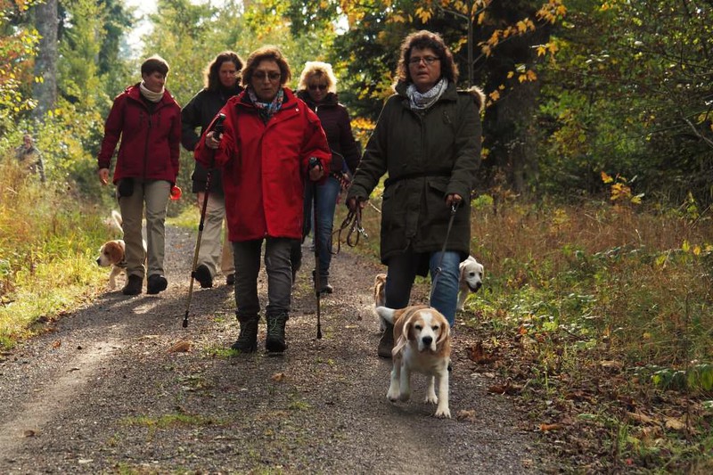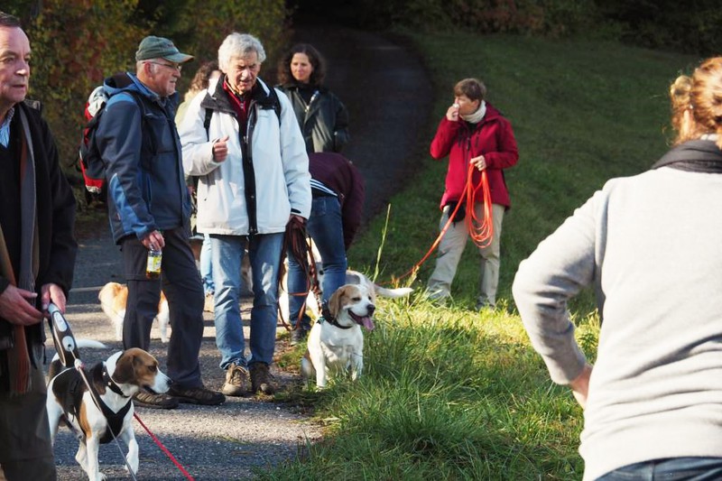 Circa 25 Teilnehmer mit Hund folgten der Einladung von Hildegard und Horst Bühler mit Lilly, den Herbstwald bei Nagold zu durchwandern. Wir trafen uns am Samstag 22.10.2016 um 10 Uhr auf dem Parkplatz des Naturfreundehauses in Nagold. Es begann mit einem leichten Anstieg in westlicher Richtung auf ein Waldplateau das sich Hirschsulz nannte. Hildegard und Horst müssen einen guten Draht zu Petrus gehabt haben, da wir besseres Wetter als erwartet bekommen haben. Und so boten sich uns sehr schöne stimmungsvolle Bilder mit weichem herbstlichen Licht, die uns den Wald verzauberten. Irgendwann war der Wald zu Ende und wir sahen auf Rohrdorf. Nächstes Ziel ein Zwischenstopp bei Bühlers in Rohrdorf. Im Hausgarten wurden Mensch und Hund versorgt. Wir bekamen Kekse und Getränke aller Art zur Stärkung gereicht, so dass der Rückmarsch entlang der Nagold wie auch im Wald um einiges leichter vonstattenging. Nach insgesamt ca. 3,5 Stunden Wanderzeit erreichten wir wieder das Naturfreundehaus in Nagold, wo wir uns alle ein sehr leckeres Mittagessen leisteten. Ein sehr schöner Beagletag ging somit seinem Ende zu mit vielen Gesprächen über dieses und jenes und natürlich über unsere Hunde.