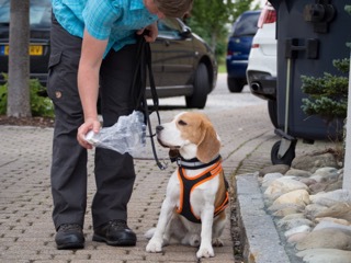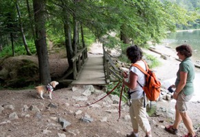 Am Samstag fuhren wir nach dem Frühstück gemeinsam an den Schluchsee um Vormittags zunächst im Ortskern, unter großer Ablenkung am Start und während des Trails, in den jeweiligen Schwierigkeitsstufen zu arbeiten. Der gutbesuchte Marktplatz im Zentrum, Unterführungen, Straßenkreuzungen und Aussichtstürme stellten keine unlösbaren Aufgaben für unsere Beagles dar - auch querende Artgenossen wurden kaum beachtet und konnten nicht von der eigentlichen Arbeit ablenken. Alle waren konzentriert bei der Sache und hatten sich die anschließende Mittagspause redlich verdient. Nachmittags wieder ein paar Trails zur Vertiefung des Erlernten, dann folgte noch ein ca. 2 stündiger Spaziergang am Ufer des Schluchsees, bei dem die Hunde endlich ihre wohlverdiente Freizeit genießen konnten.