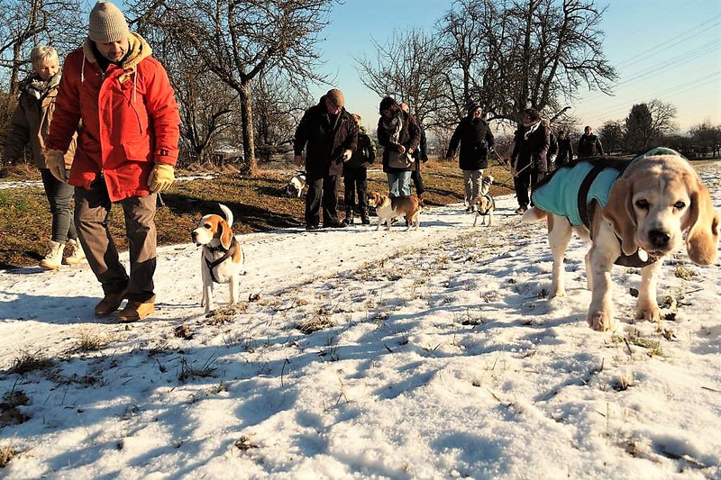 Gefühlte minus 15 Grad Celsius führten am 06.01.2017 auf dem Parkplatz vor dem Ausflugslokal Schellenhof in Bietigheim-Bissingen dazu, dass die über 20 Teilnehmer schon ungeduldig auf den Startschuss von Wanderwart Dr. Reinhardt Hoppe warteten, um endlich durch Bewegung etwas Wärme in den Körper zu bekommen. Es war 10:45 Uhr als der Beagle-Konvoi sich in östlicher Richtung vorbei an einem Weiher, und jetzt nach Süden auf die nahen Anhöhen bewegte, die von Sonne pur beschienen wurden. Nun ging es mit optimaler Betriebstemperatur, unterstützt durch ständigen Sonnenschein, immer am Waldrand entlang. Herrliches Wetter und wiederholende Raureif Konstellationen verwandelten den Tag in eine besondere Atmosphäre. Am Flohberghaus vorbei, erreichten wir mit sehr schönen Weitblicken über das Leudelsbachtal und später auch über das Enztal den Hammelrain/Oberer Wannenberg, und jetzt mit Blick auf Unterriexingen und den Enzschleifen. Nach ca. 2,5 Stunden kamen wir wieder zum Ausflugslokal Schellenhof, wo wir mit einem sehr guten Mittagessen und guten Gesprächen unsere muntere Beaglerunde ausklingen ließen.