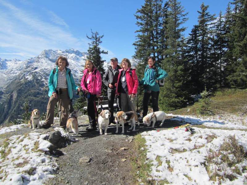 Gut gestärkt mussten wir uns nun auf den weiteren Weg begeben und zwar auf zum Zeinisjochhaus. Hier angekommen ließen wir uns von der Speisekarte verwöhnen, um anschließend mit dem Bus die Heimfahrt über die Bielerhöhe am Silvretta-Staussee zurück nach Partenen anzutreten. Die Busfahrt war für unsere Hunde eine große Herausforderung, da in Österreich in den öffentlichen Verkehrsmitteln alle Hunde einen Maulkorb tragen müssen, was unseren Hunden überhaupt nicht gefiel.