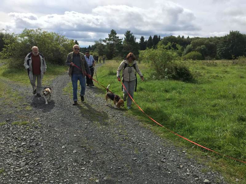 Am Sonntag stand noch ein Spaziergang zum Basaltsee auf der Hochrhön auf dem Plan. Ca. 1,5 Std ging es durch schöne Hochlandschaft. Zum Abschluß ging es zum Kioskrestaurant Basaltsee, das einem Beagleclubmitglied gehört, nämlich Johannes Gründel mit Beagle Aiko. Dieses Beaglchen hatte extrem lange Ohren, fast wie ein Basset, wunderschön. Johannes machte für uns frisch geräucherte Forellen mit Kartoffelsalat. Ein Gedicht !!